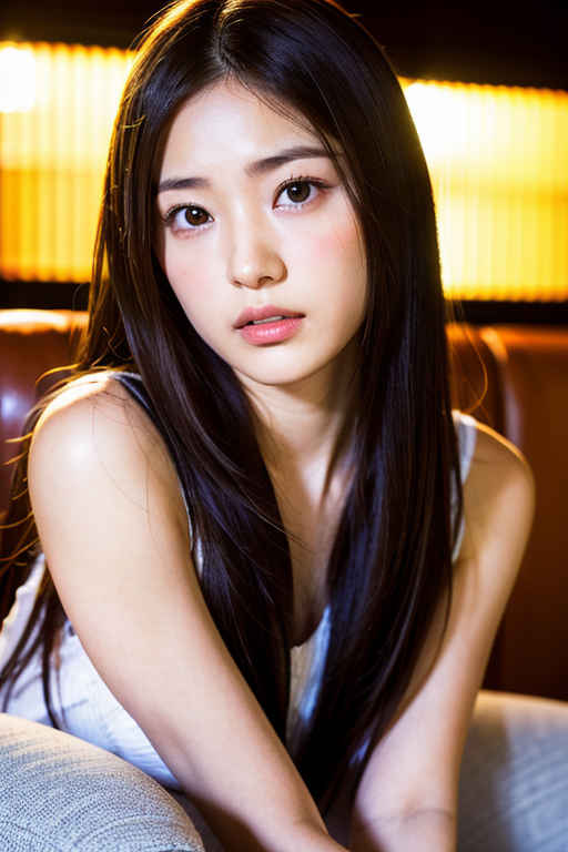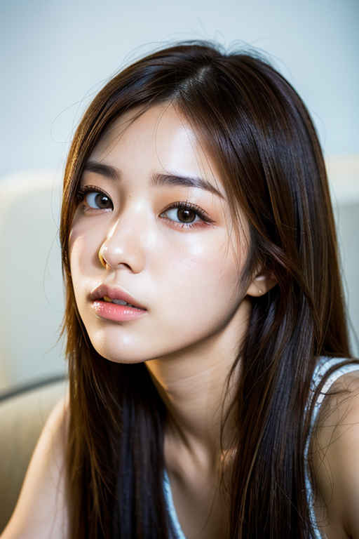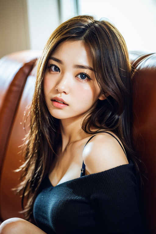 | 最高品質、超高解像度、(フォトリアリスティック:1.4)、RAW写真、日本人女の子1人、ソロ、かわいい、(瞳孔、目のライト)、詳細な美しい顔、(ロングヘア)、ソファに座る |