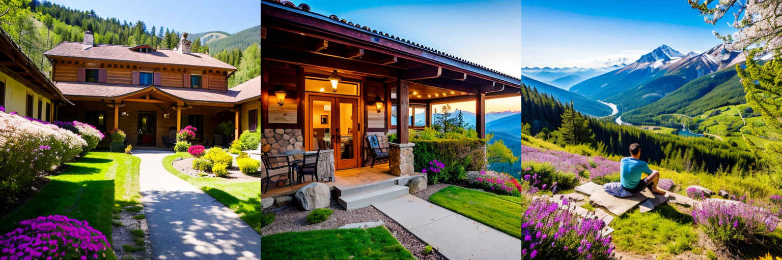 | (傑作、最高品質、高解像度: 1.2)、(フォトリアリスティック: 1.37)、テーブルと椅子があり、ツタが壁を登り、柔らかな金色の日差しがシーンを照らし、平和な都市を捉えた、魅力的なカフェの非常にリアルな写真一瞬 | |
