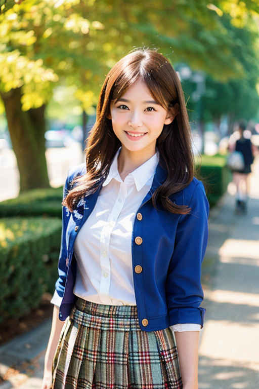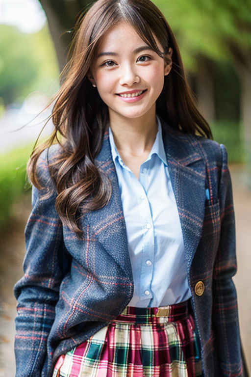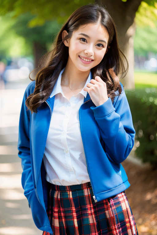 | (マスターピース、最高品質: 1.4)、(8k、生写真、フォトリアル: 1.2)、つやのある肌、詳細な肌、詳細な顔、詳細な目、1人の女の子、日本のアイドル、美しい顔、青いジャケット、ぼやけ、ぼやけた背景、ぼやけ前景, ボケ, 胸, 茶色の目, 茶髪, 色収差, コスプレ写真, 被写界深度, ジャケット, 唇, 長い髪, ビューアを見て, モル, モーションブラー, 屋外, 写真\(medium\)、チェック柄、チェック柄のスカート、プリーツ スカート、学生服、シャツ、スカート、笑顔、ソロ、ツリー、白いシャツ | |