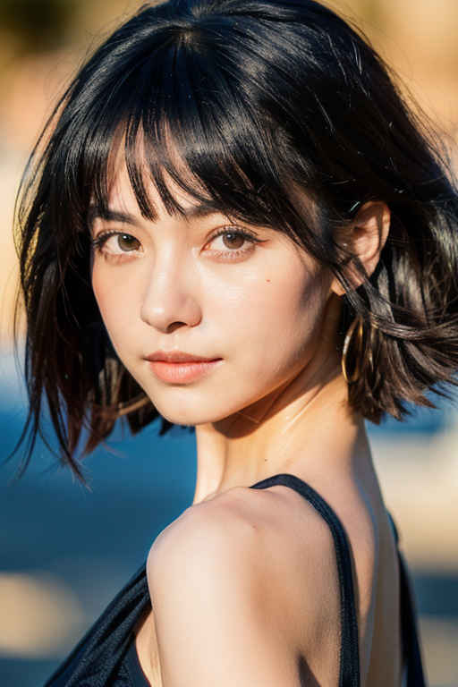 | 風になびいた長い[青黒:.3]の髪、ビューアを見て、(傑作:1.3)、(8k、フォトリアリスティック、RAW写真、最高品質: 1.4)、日本人、(1人の女の子)、美しい顔、(リアルな顔)、 (黒髪、ショートヘア:1.3)、美しい髪型、リアルな目、細部まで美しい目、(リアルな肌)、美しい肌、魅力的、超高解像度、超リアル、高精細、黄金比、 | |
