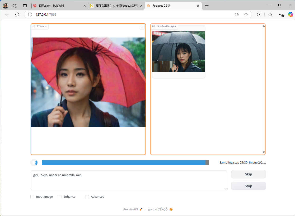 ・生成途中の画像を表示しながらデフォールト設定では2枚の画像を生成する