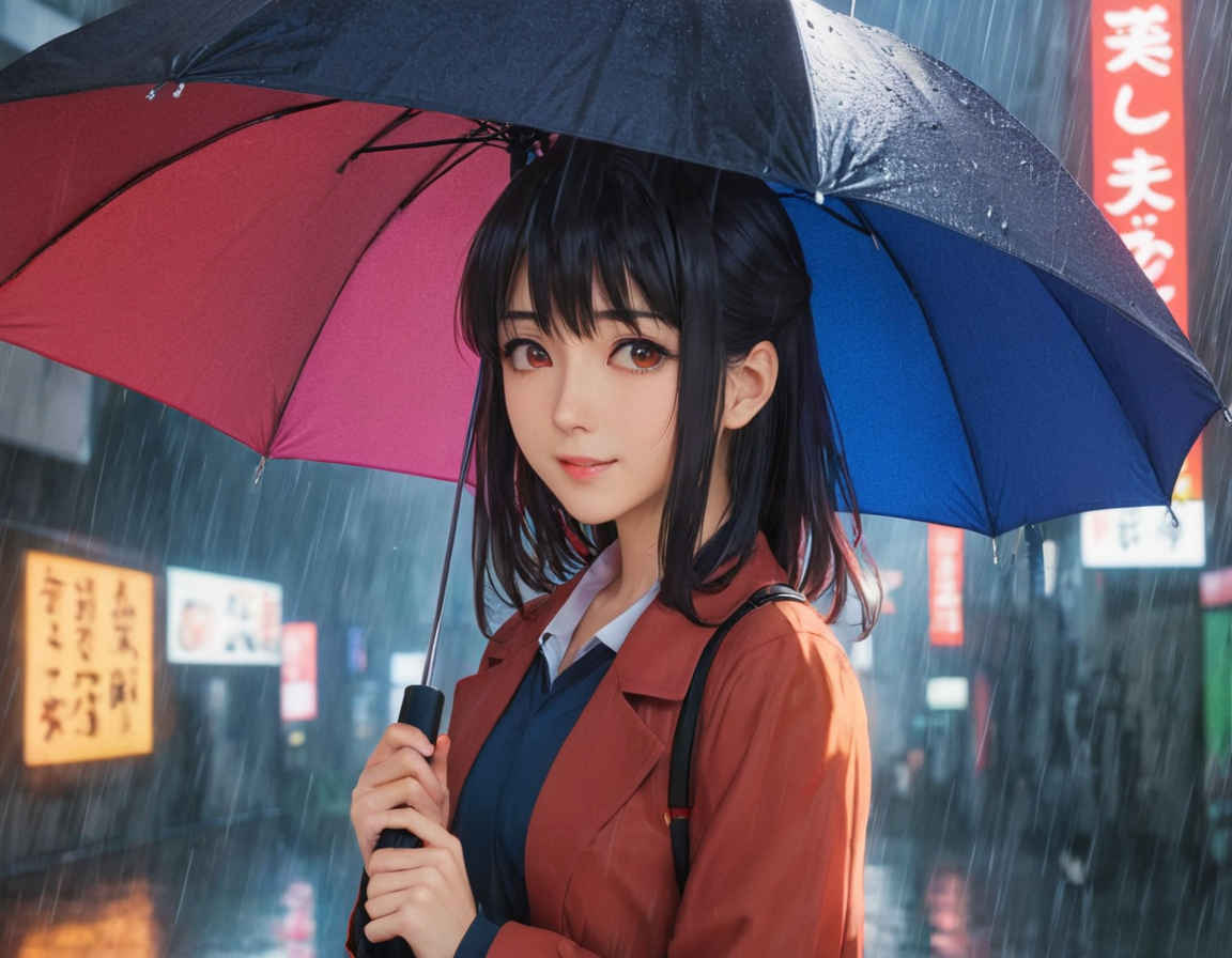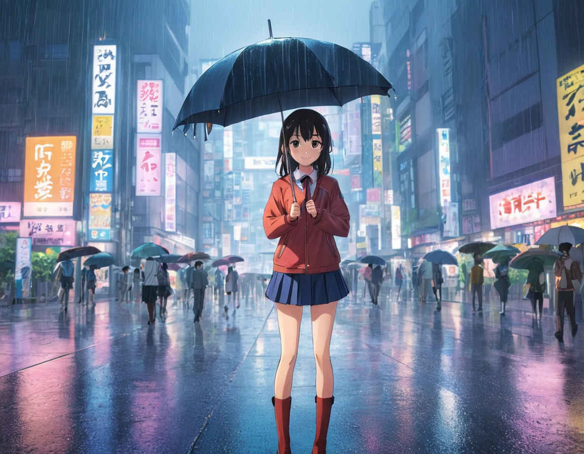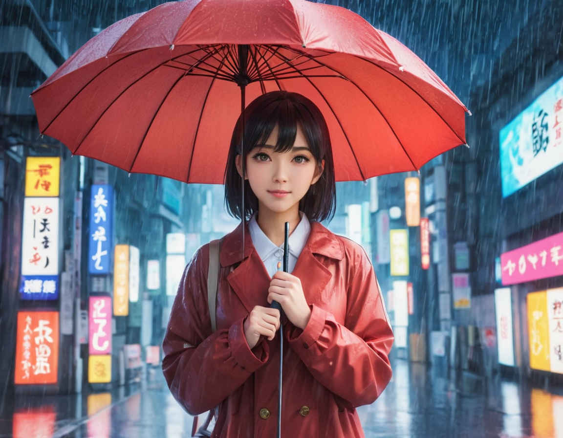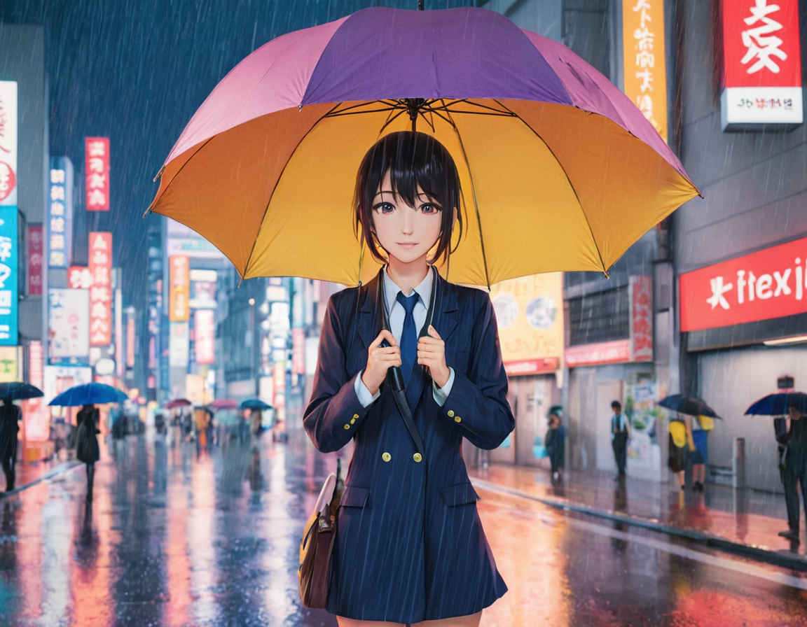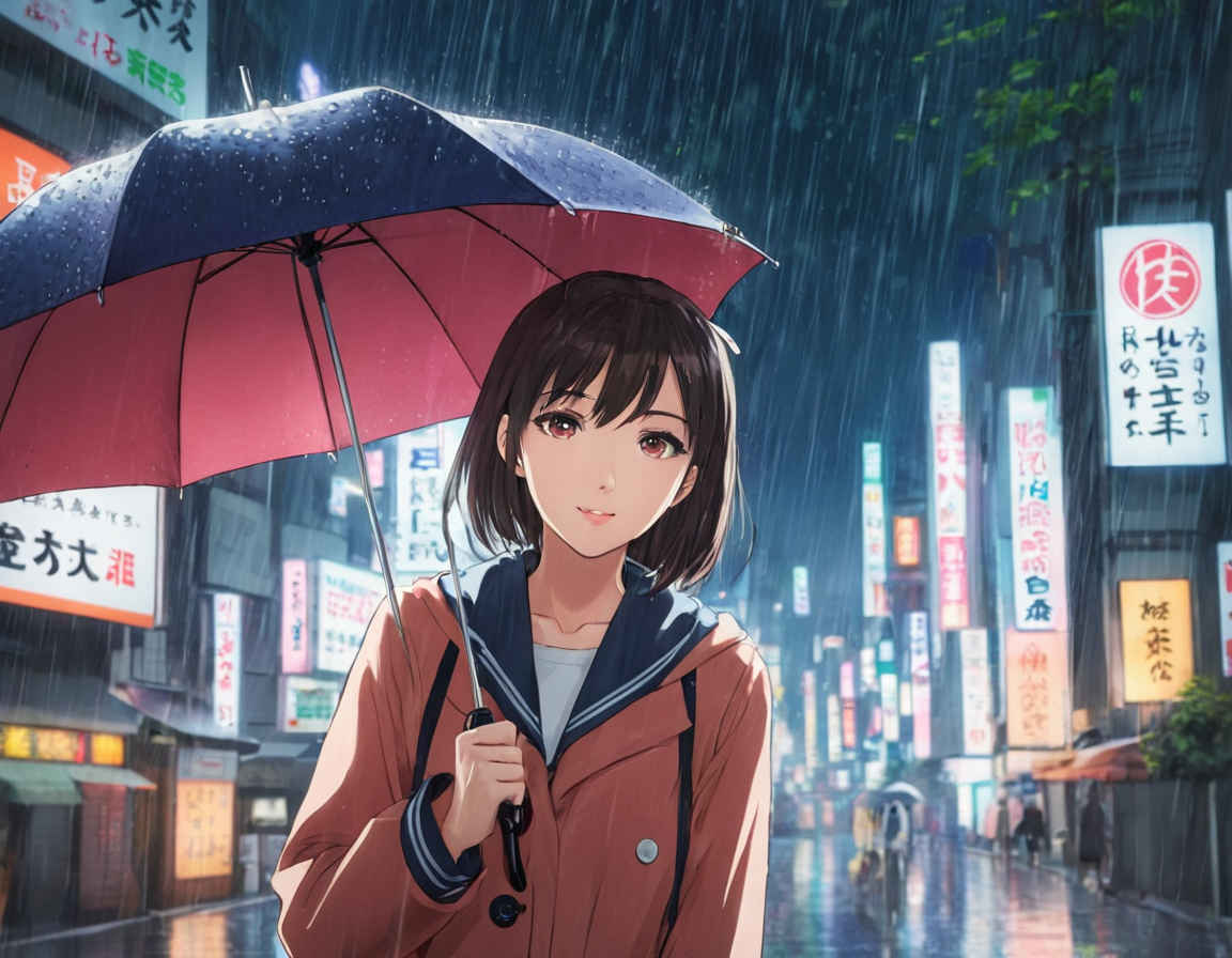girl, Tokyo, under an umbrella, rain (女の子、東京、傘の下、雨)