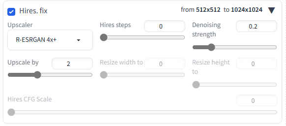| Upscaler 1 | アップスケーラー 1 | 高解像度化するアルゴリズム・手法(推奨:R-ESRGAN 4x) |