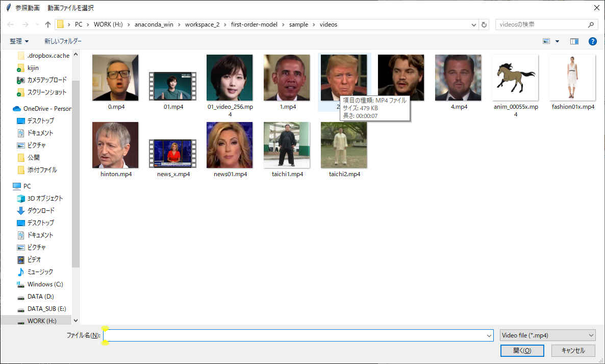 | --driving_video | ダイアログによる動画選択(swap_index=[-1] の時はなし) | ||