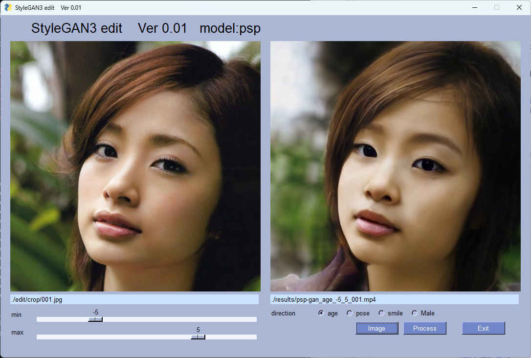 | 1 | DLFS | 人間の年齢による顔の変化 | 数十秒 | - ※ |