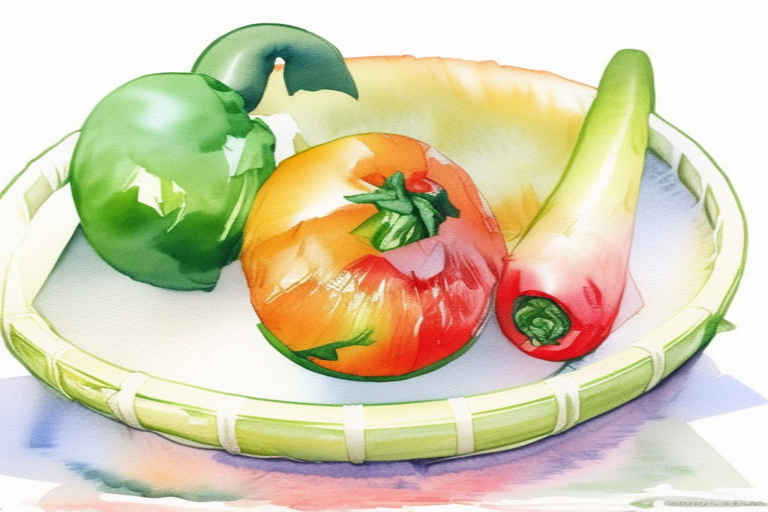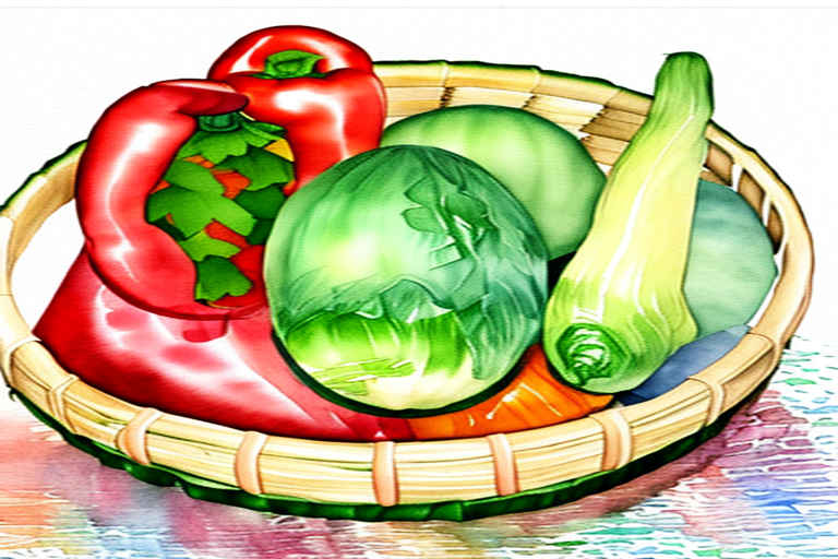 Vegetables in a basket, watercolor painting, on a white background