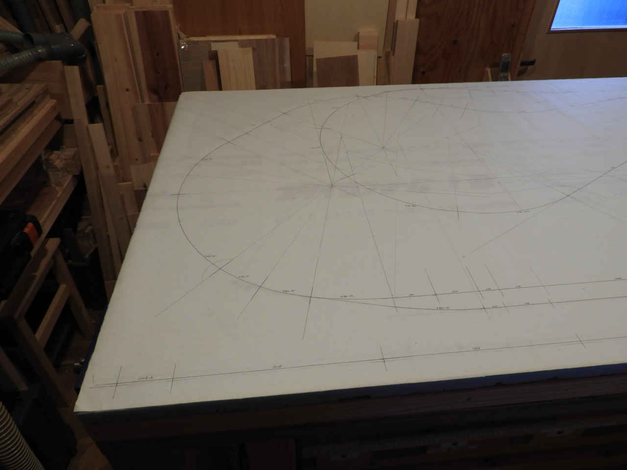 リホームの残材で 1820x910 のベニヤ板に骨組みを作り 30mm のスタイロホームを貼る