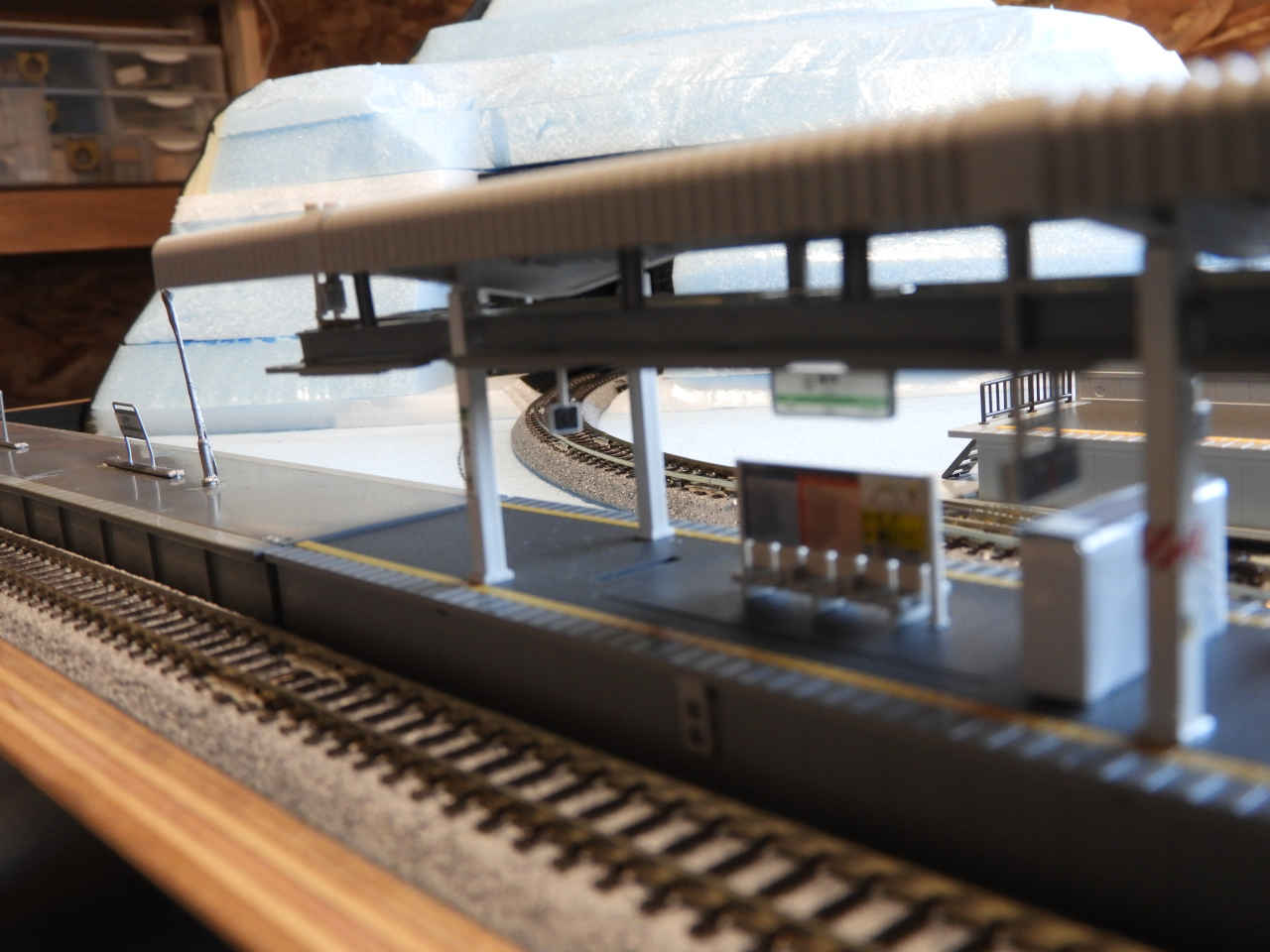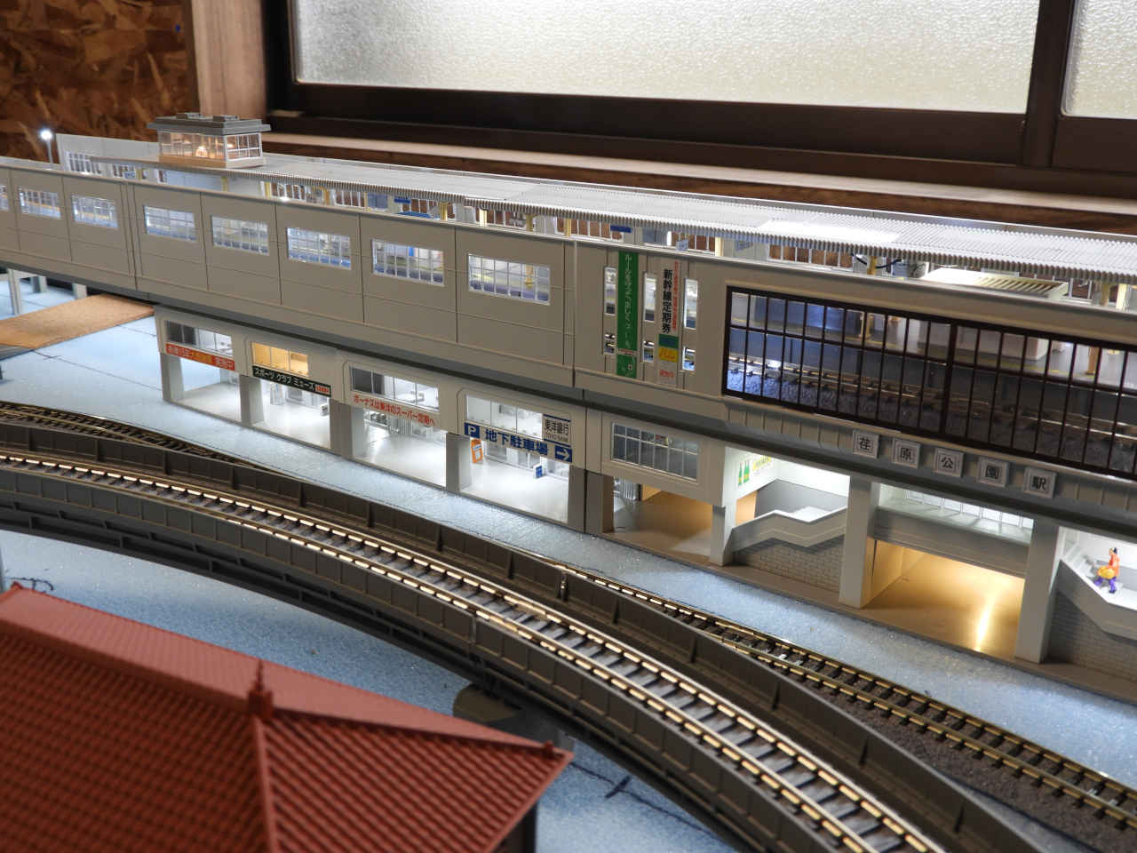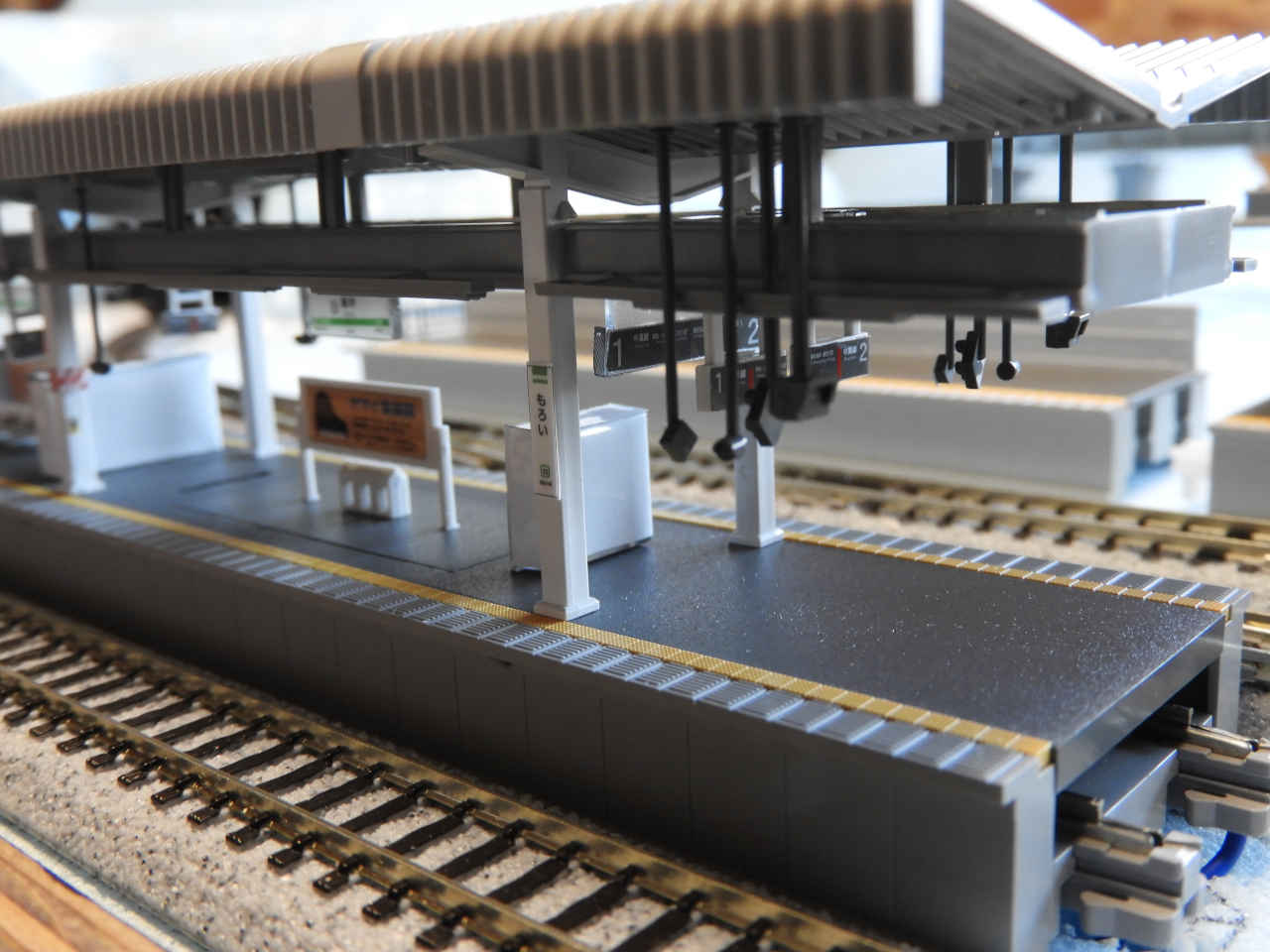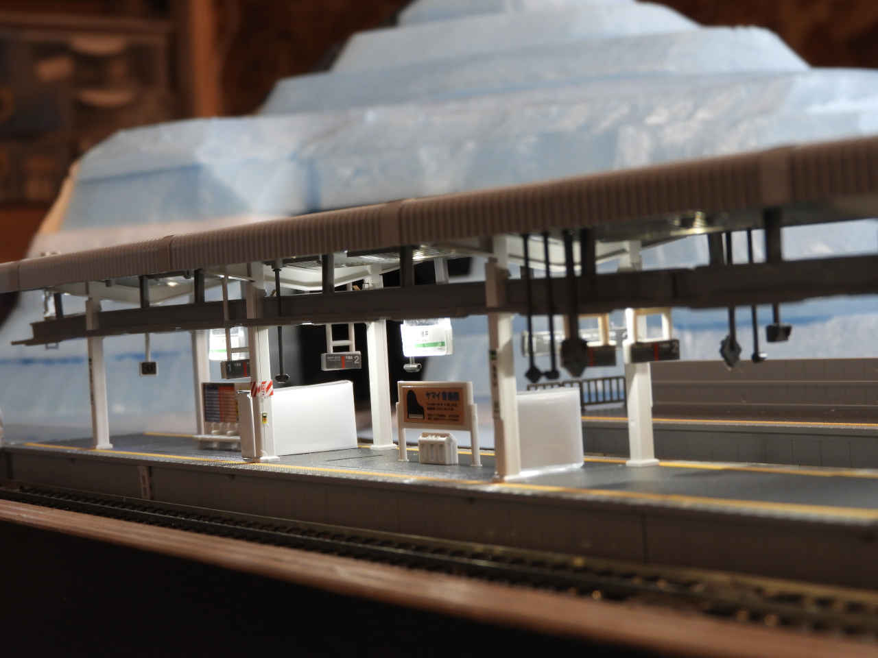 ホームに小物を配置して設置。シールの手持ちから駅名は「諸井駅」とする。