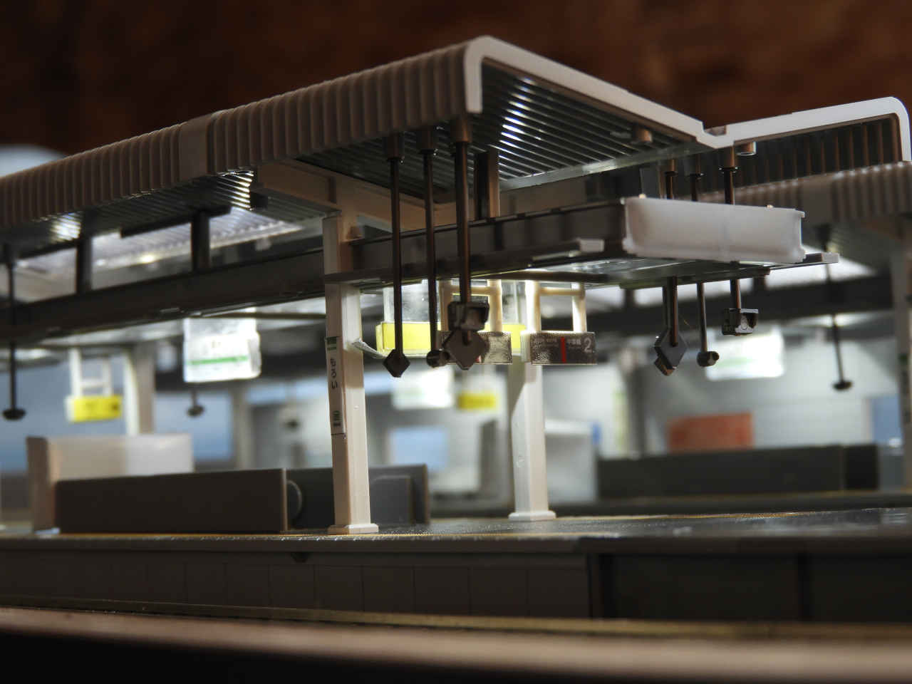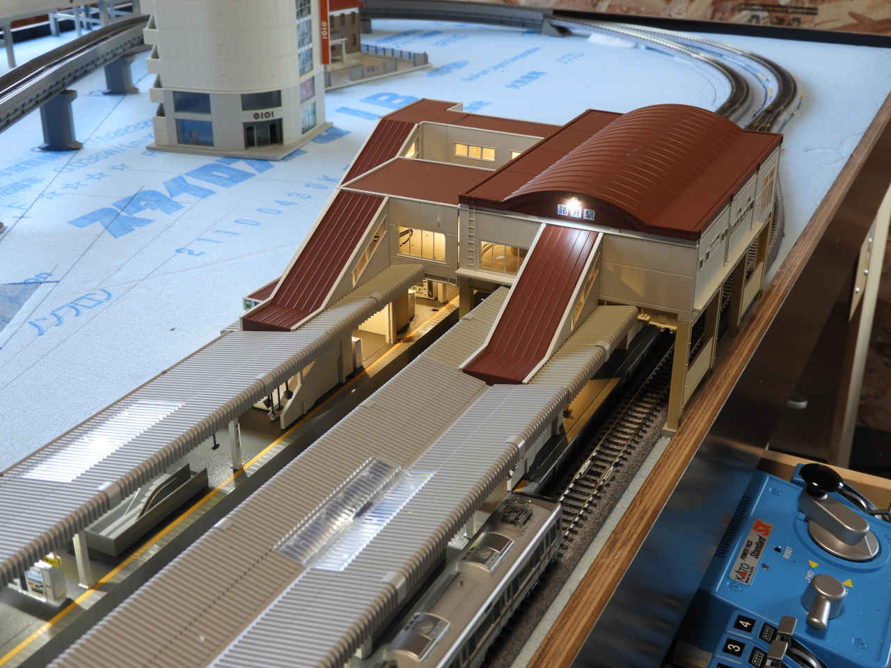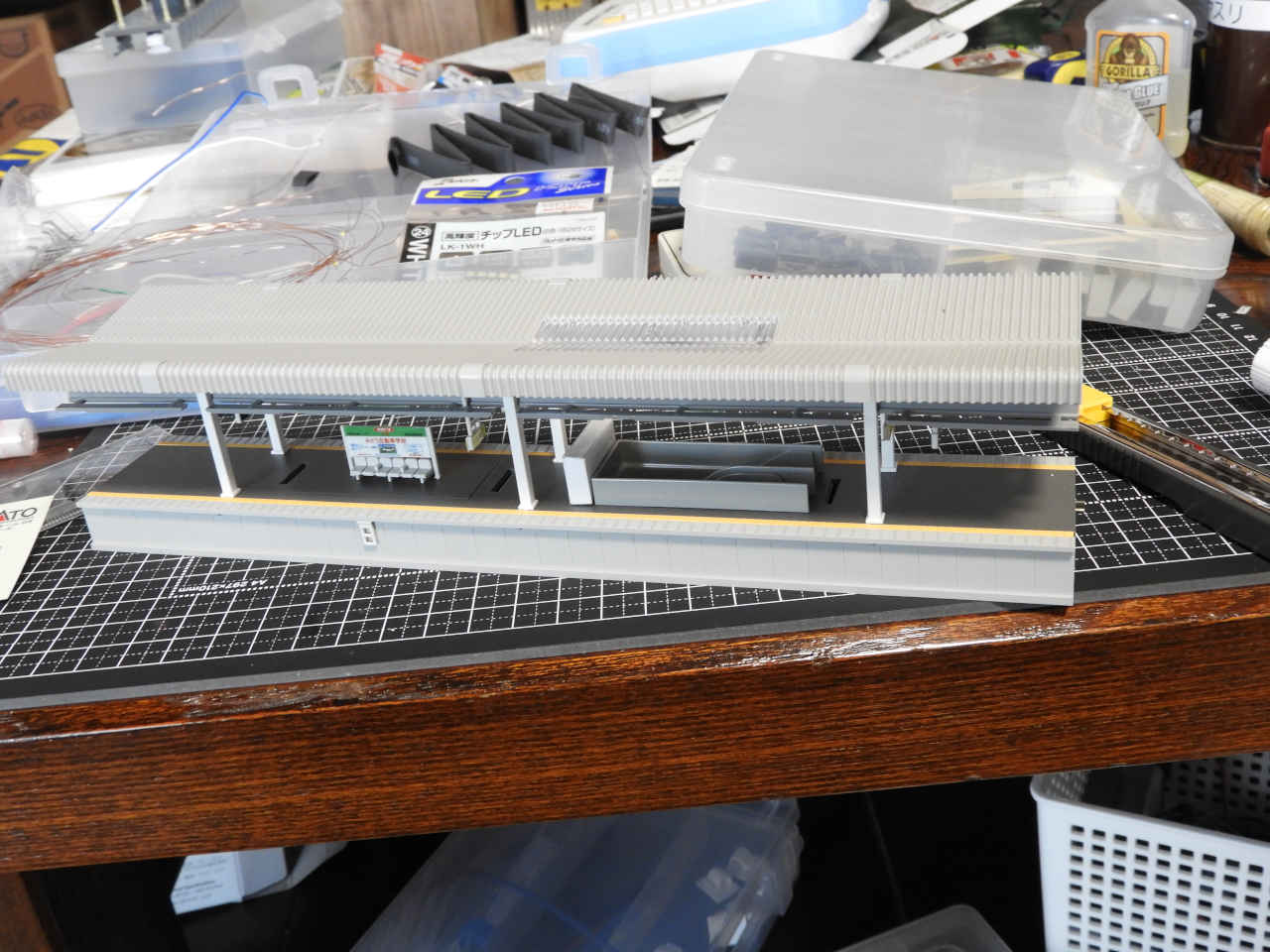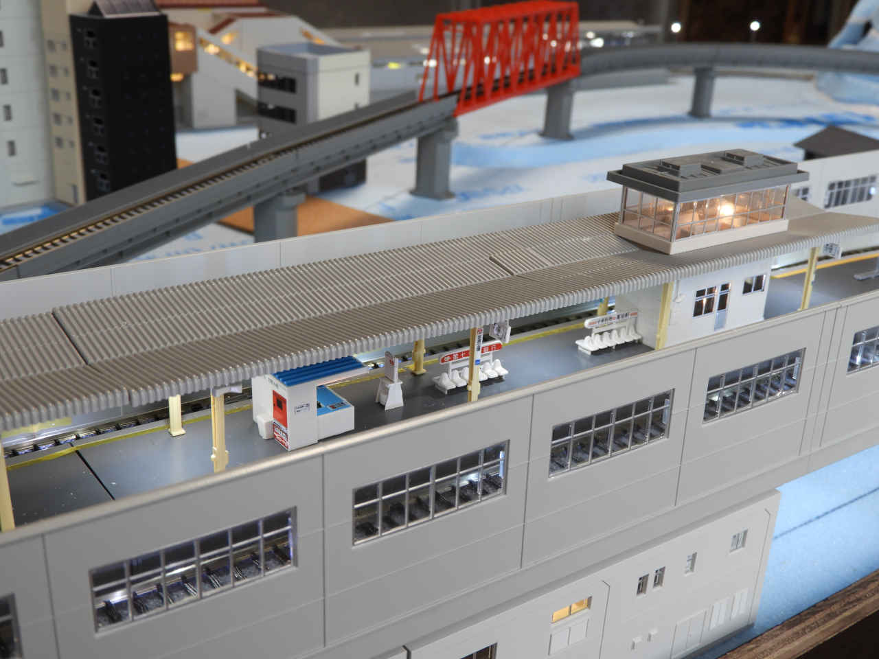 ホームに小物を配置して設置。シールの手持ちから駅名は「諸井駅」とする。