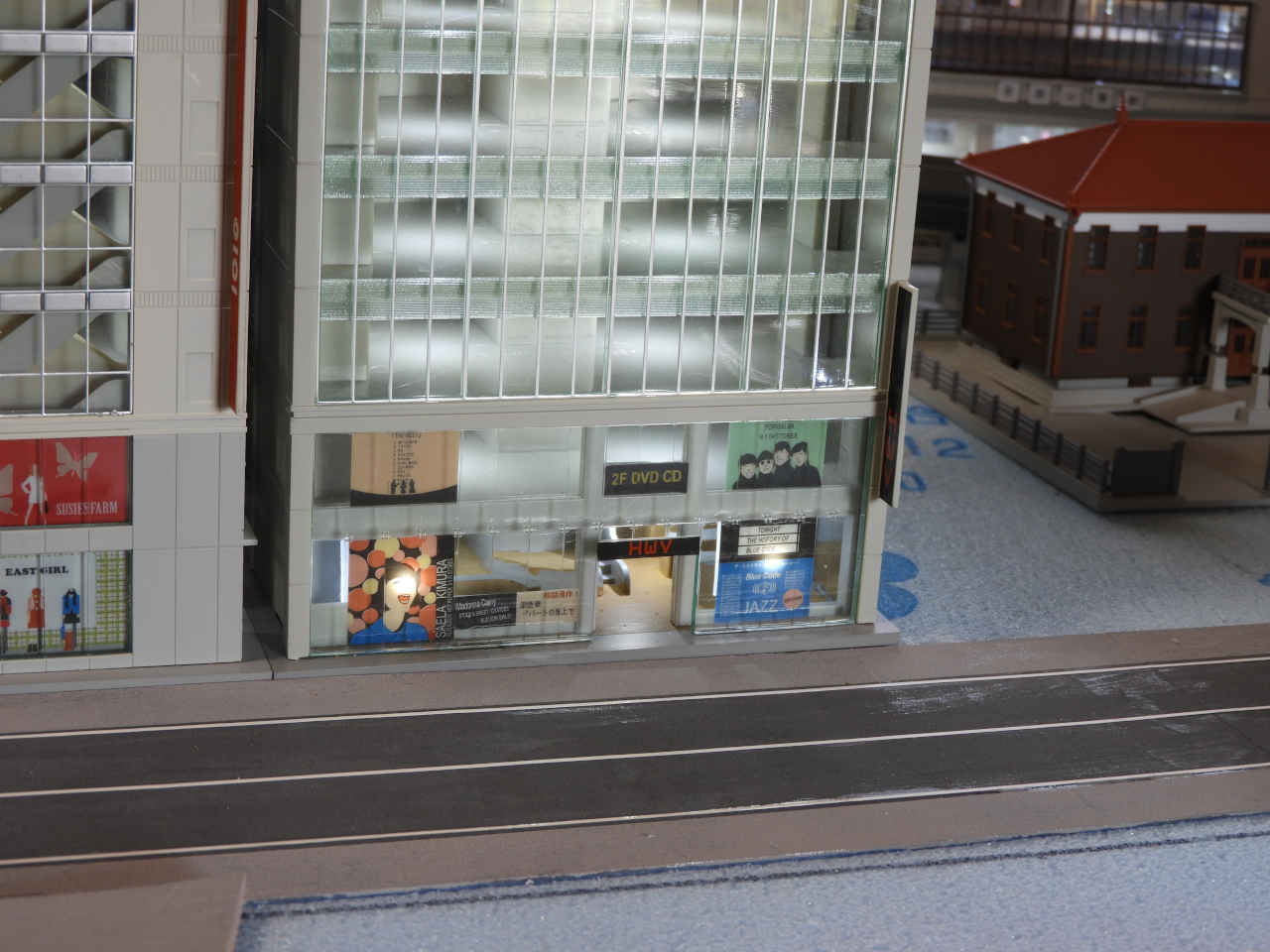 駅前に照明を組み込んだビルを仮配置