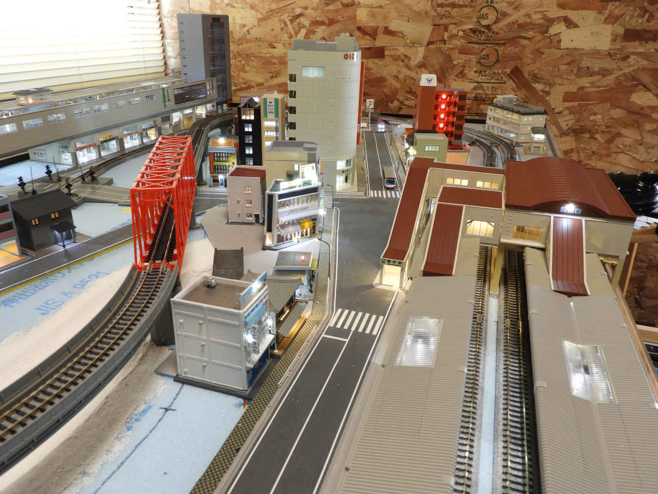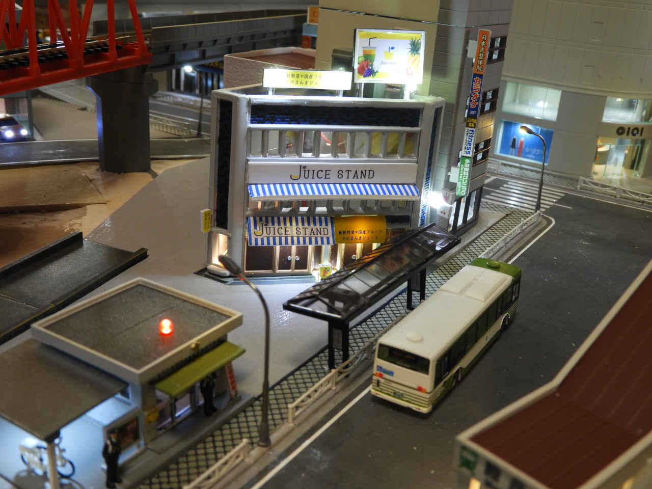 駅舎に照明を入れて設置。