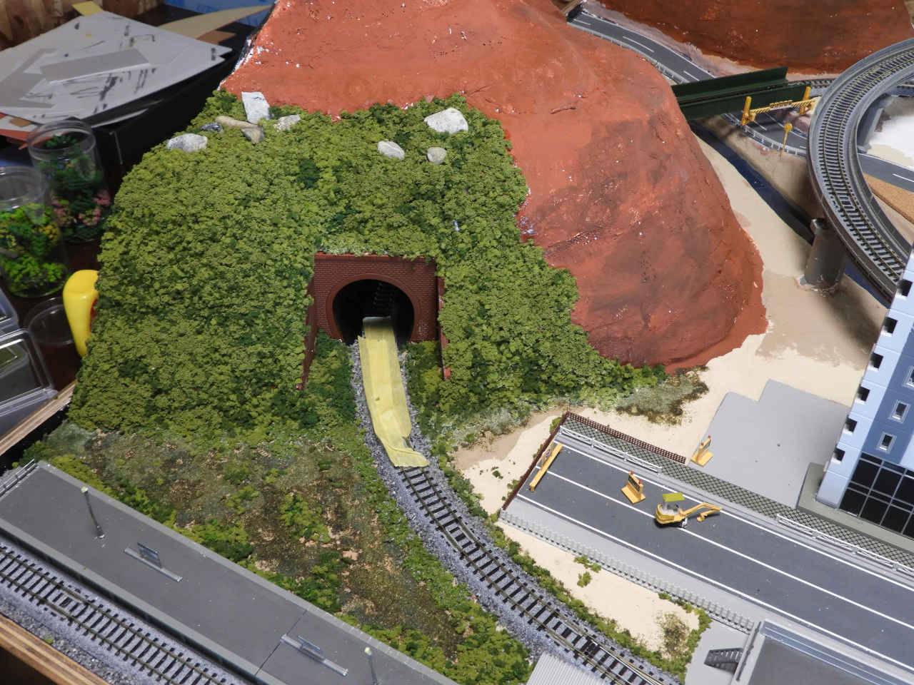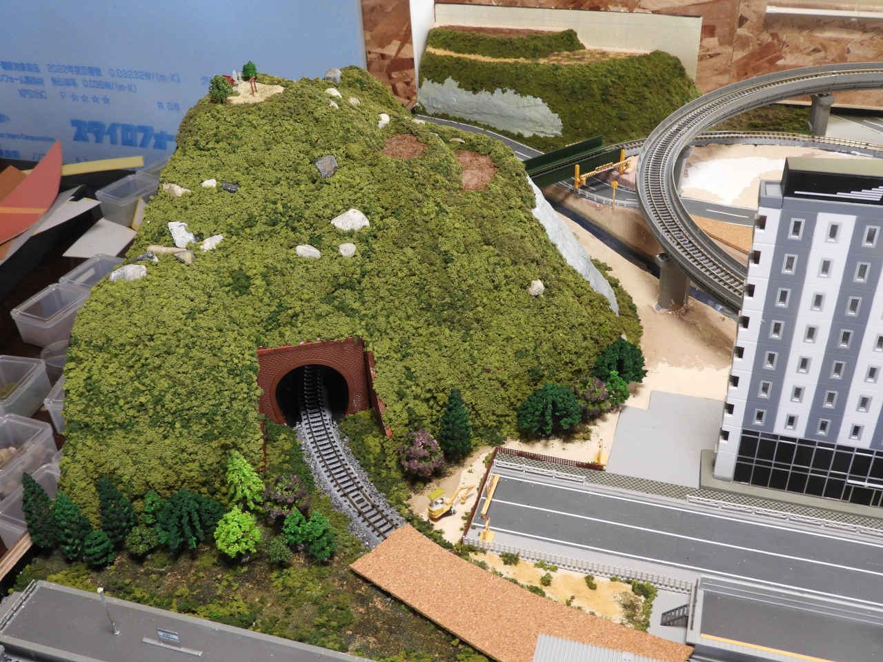 スタイロホームを重ねて山を作り内部を黒に着色。