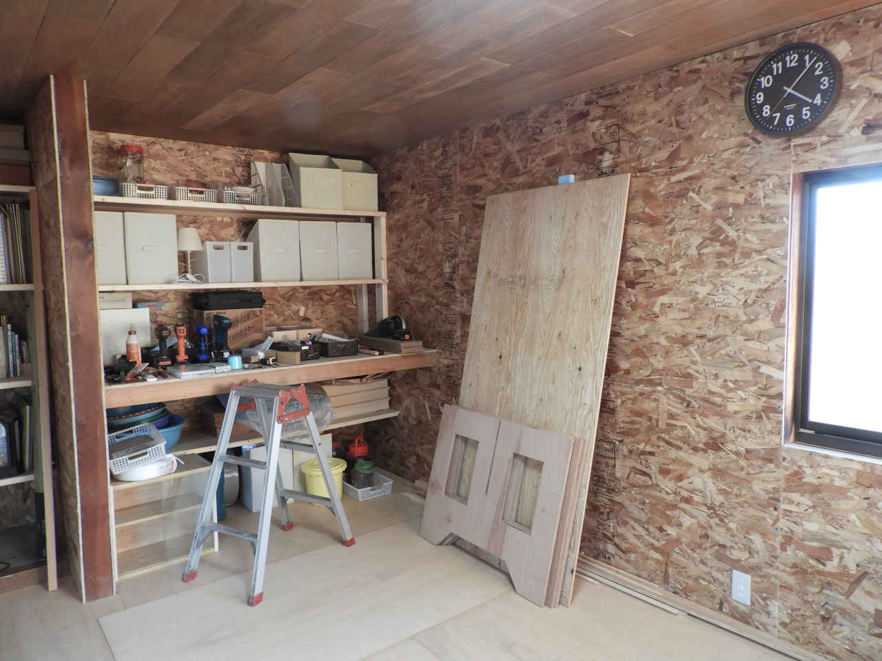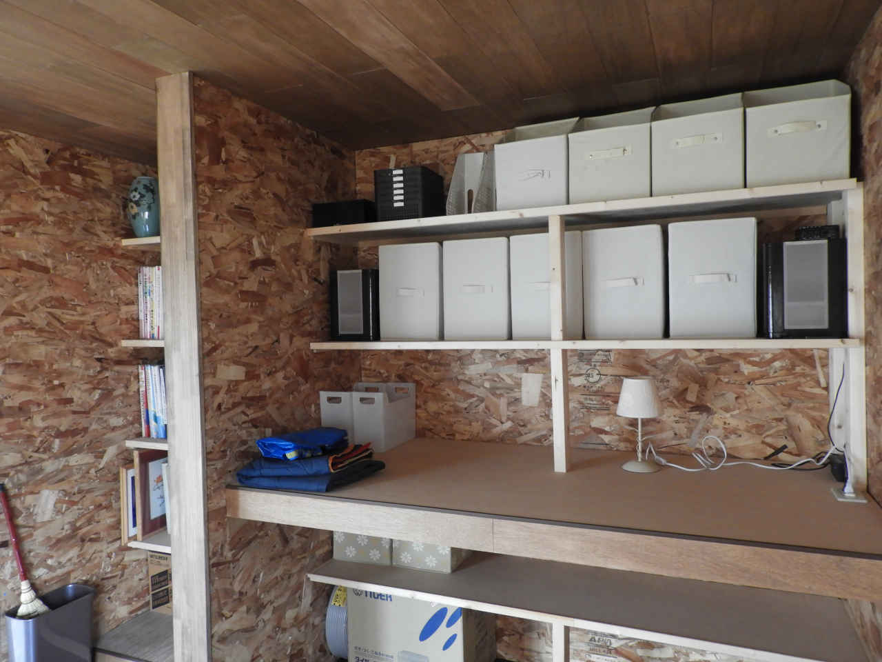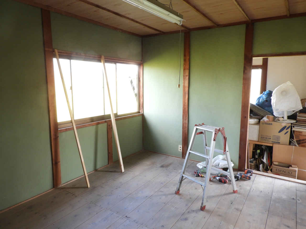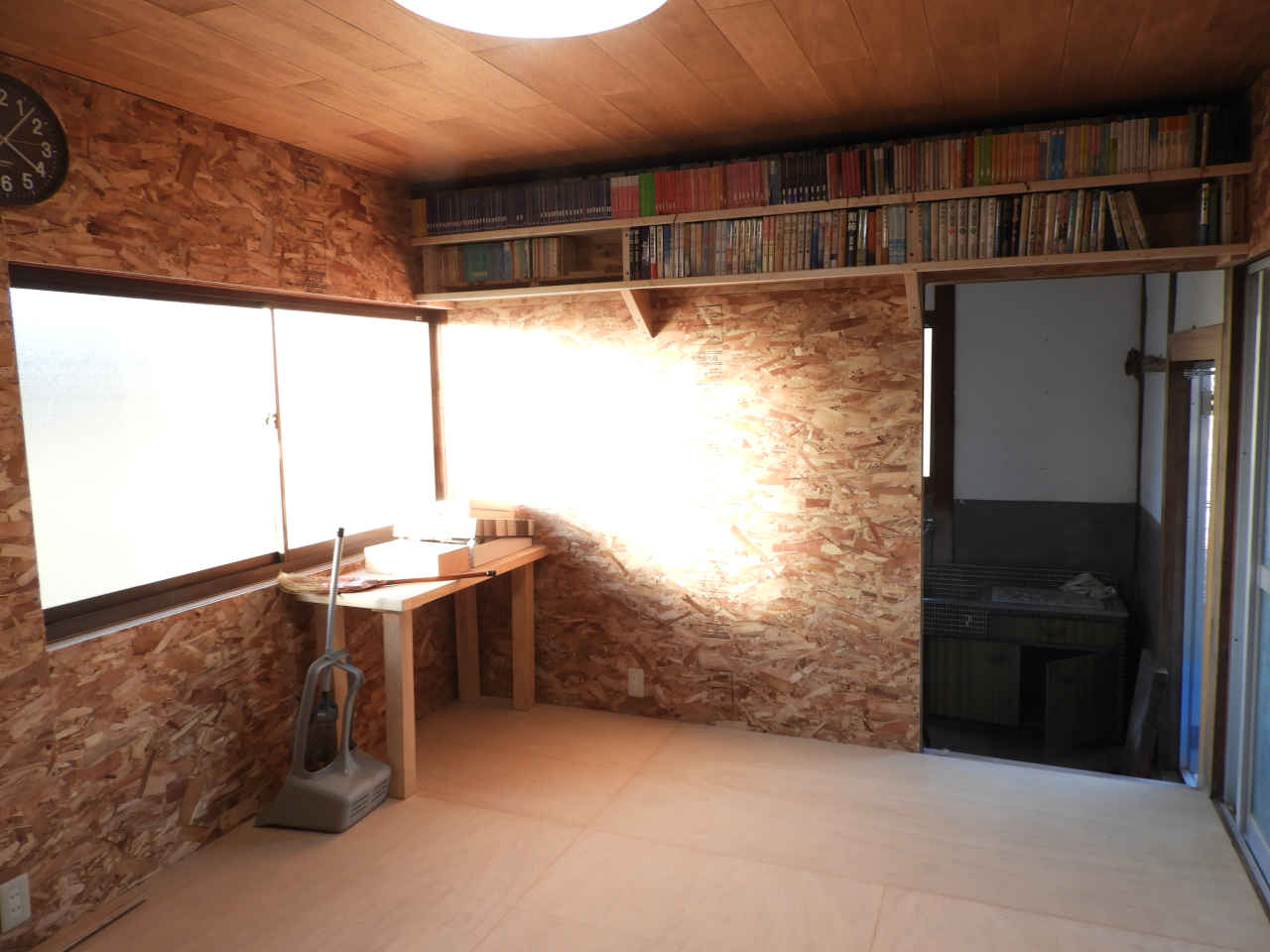 - 設置した棚に隣の部屋に押し込んだ、書籍・アルバムなどを移動。入り口の部屋の改装準備。
