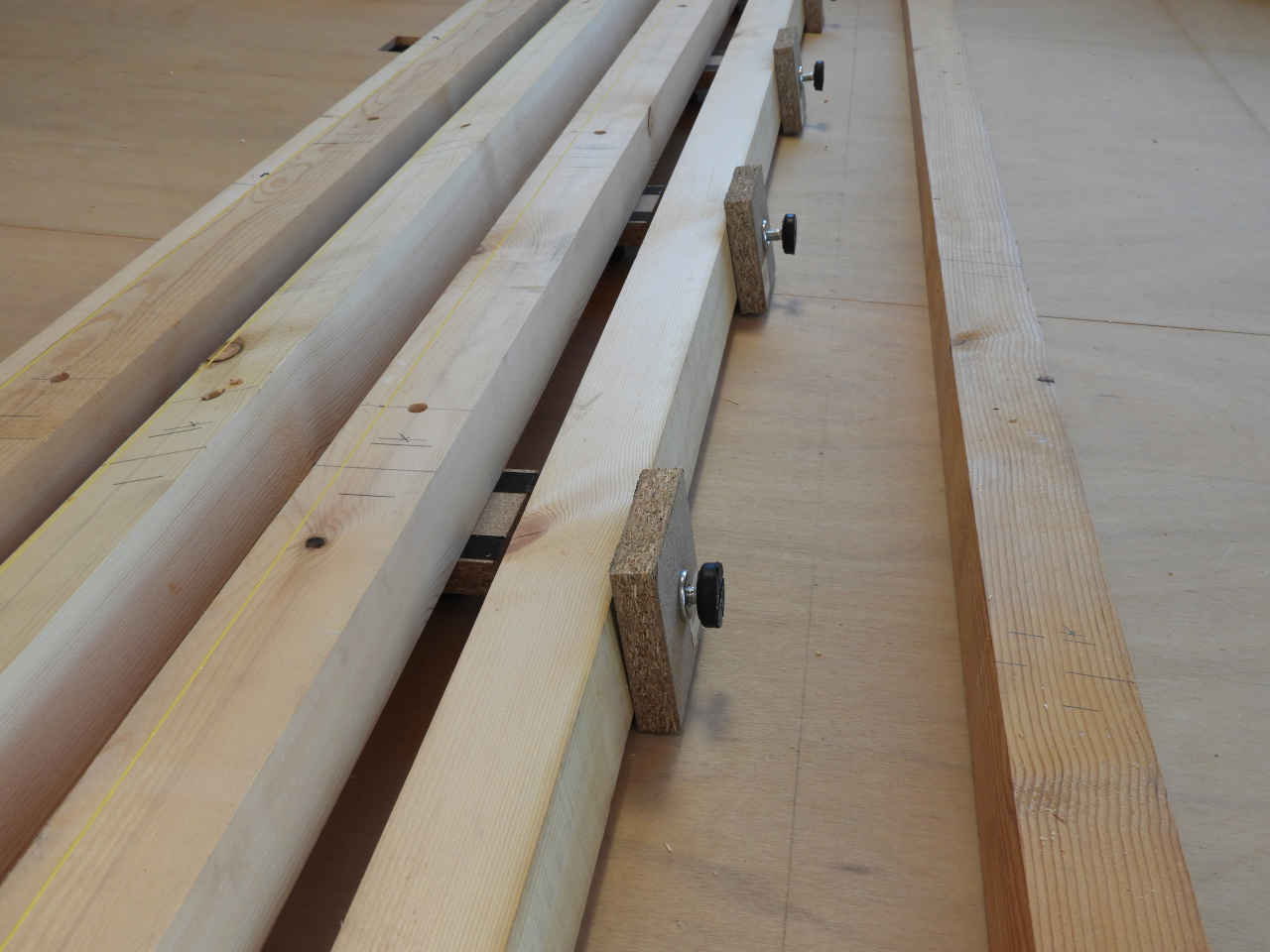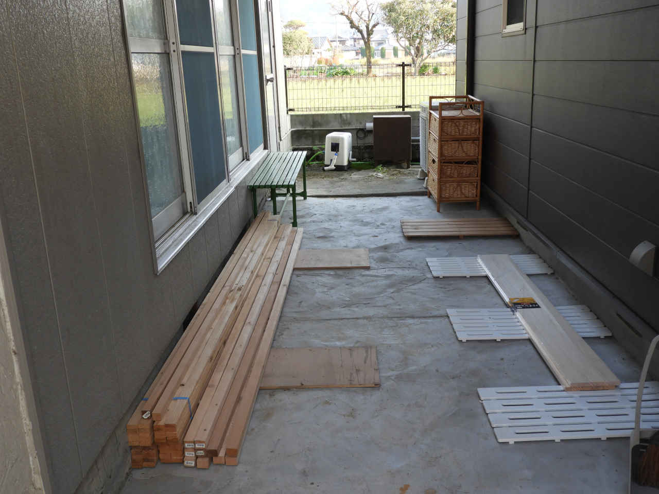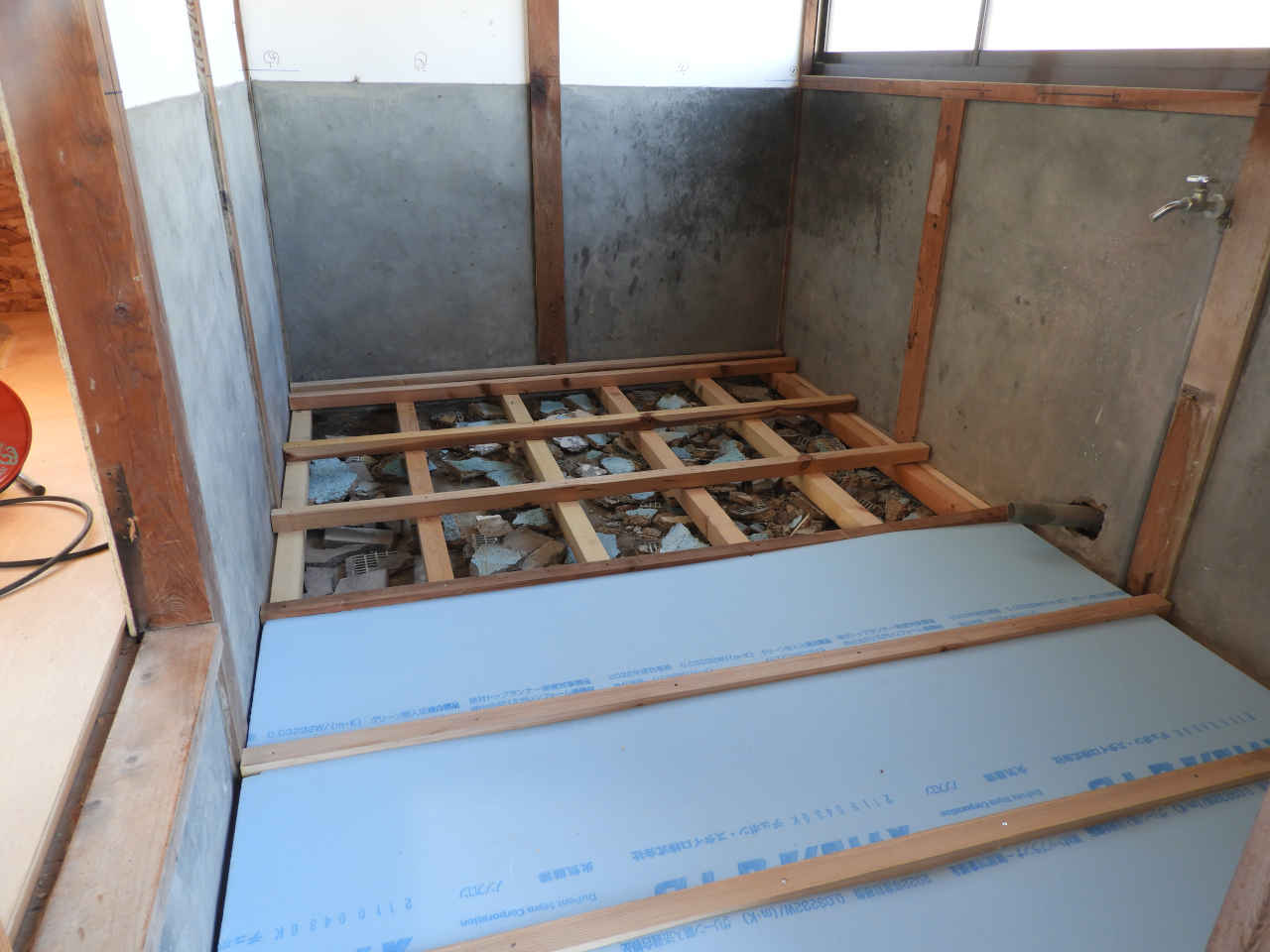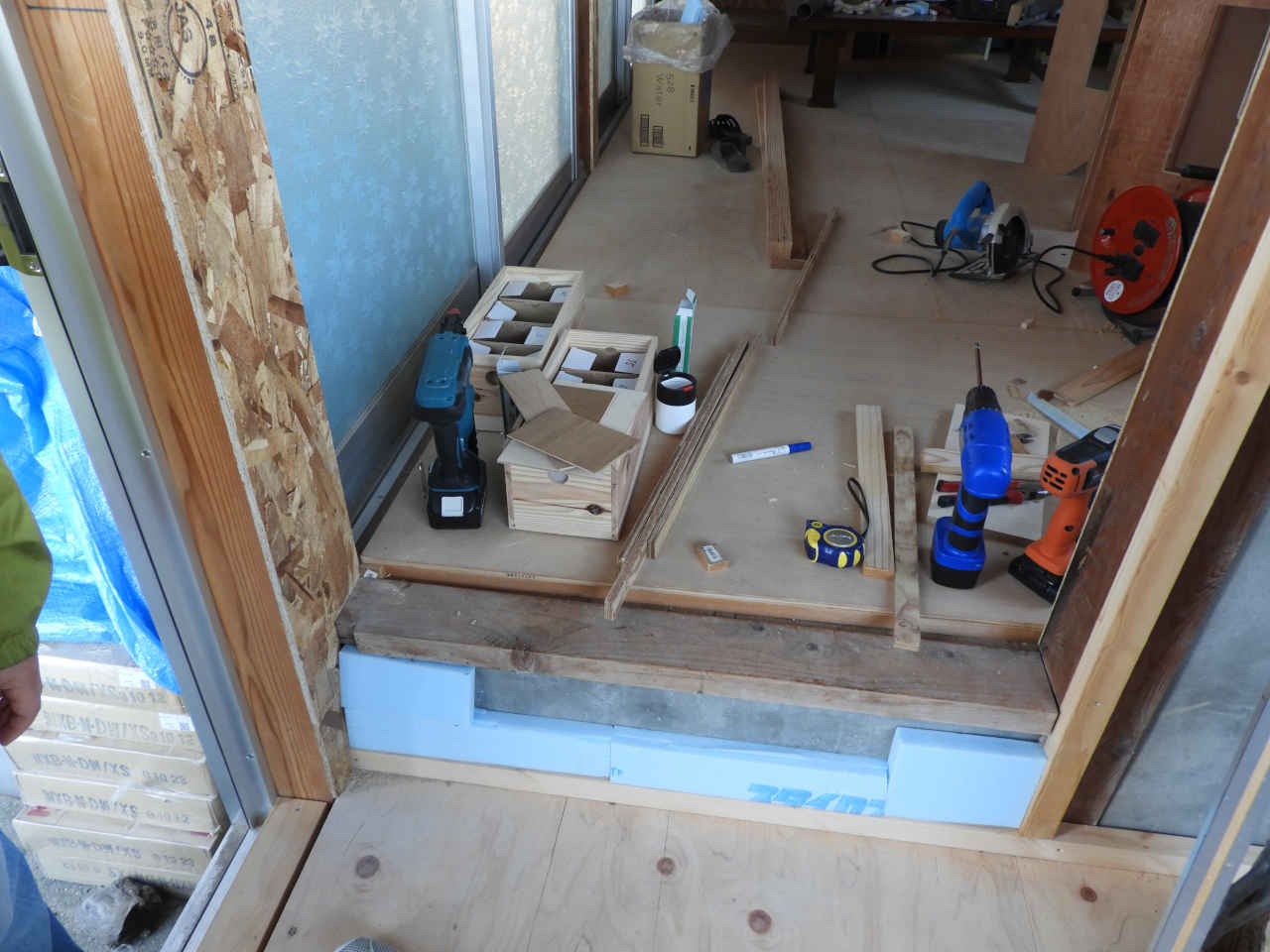 - 元の板張りの床に 40x30mm の角材を渡して補強する。