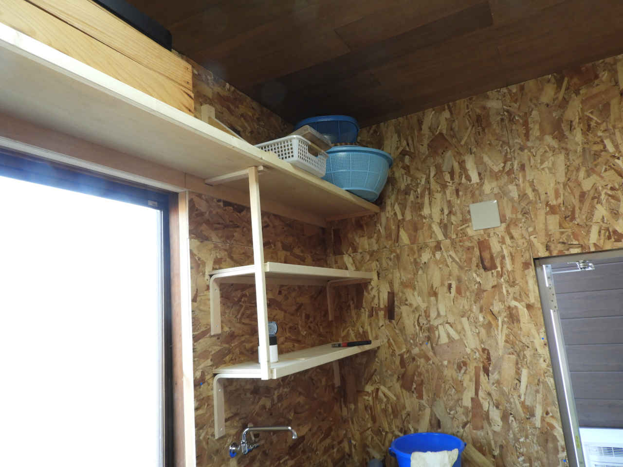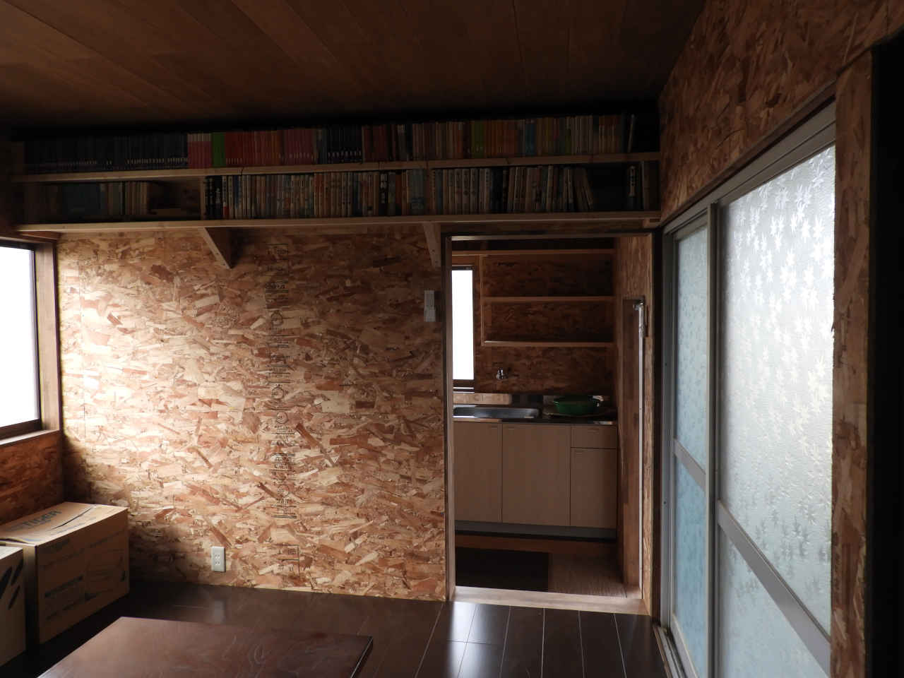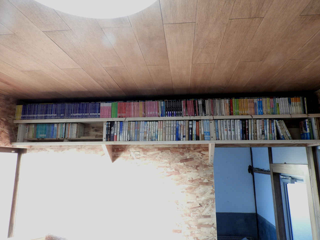 ギリギリ新書版も入るサイズに。リホーム時の壁板の残材を使って…